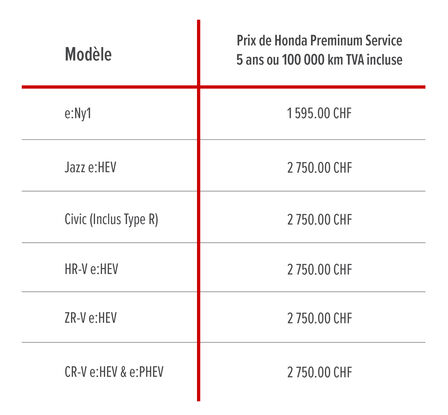 Contrat d’entretien Honda Premium Service 5 ans ou 100’000 km